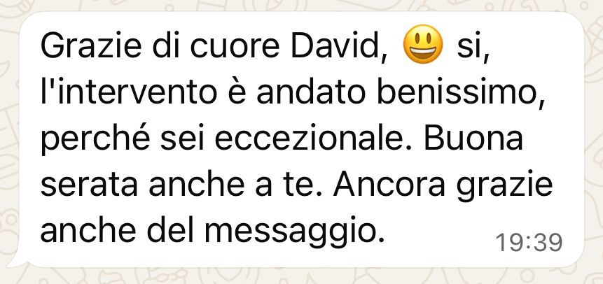 Ho fatto gli impianti e posso solo dire bene di questo Studio e di tutto lo staff. Il Dott. Moriconi mi ha consigliato subito la sedazione e all'inizio non ero convinto, poi l'abbiamo fatta e sono stato contento perché non ho sentito nulla. A casa mi sono riposato la sera e il giorno dopo non avevo nulla. Bravi per quello che fate, grazie.